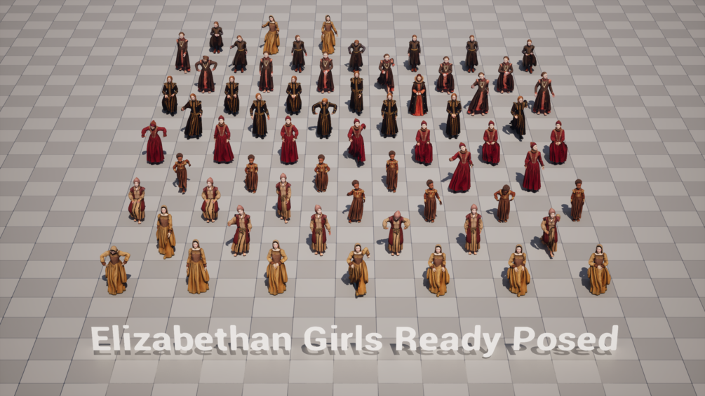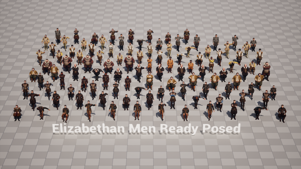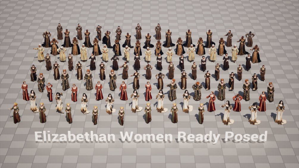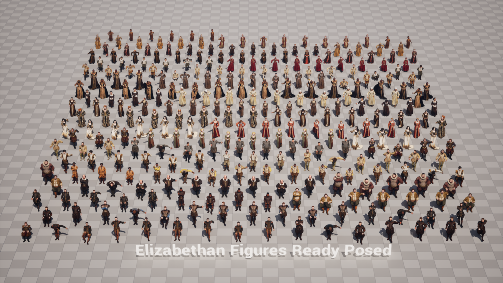 Over 250+ Renaissance / Elizabethan / Jacobean inspired ready-posed mesh figures as FBX files and Unreal 5.4 project.